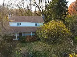 The house is a two-story building that faces east and is originally made from logs.[2][3] However, the house has been clapboarded on the exterior.[2][3] Furthermore, the house had been whitewashed multiple times throughout its history, and plaster was placed over visible logs.[2] It is likely that the house was built in multiple phases.[2] The interior was renovated started in 1953,[2] and it was restored to reflect its original state.[2][3] The house has three log rooms that each have their own chimney.[2][3]