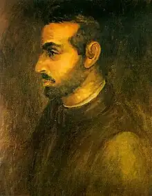 Some thirty of Juan de Anchieta's compositions survive, among them two complete Masses, two Magnificats, a Salve Regina, four attributed Passion settings, with other sacred works and four compositions with Spanish texts. The two Masses and many motets which survived, show extensive use of plainsong and much chordal writing.[1] He was among the leading Spanish composers of his generation, writing music for the ample resources of the court chapel of the Catholic Monarchs.[2] Anchieta might be the author of the motet Epitaphion Alexandri Agricolae symphonistae regis Castiliae (published in 1538), which contains important details of the Agricola's biography.[3]