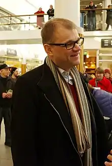 Juha Petri Sipilä (Finnish pronunciation: [ˈjuhɑ ˈpetri ˈsipilæ]; born 25 April 1961) is a Finnish politician who served as Prime Minister of Finland from 2015 to 2019. A relative newcomer to politics, he has a successful background in business.[2] He was the leader of the Centre Party from 2012 to 2019. After leading the Centre party to victory in the 2015 general election, Sipilä formed a centre-right coalition and was appointed Prime Minister by the Finnish Parliament on 29 May 2015.[3] On 8 March 2019, Sipilä stated his intention to resign as Prime Minister, citing difficulties in reforming Finland's health care system. President Sauli Niinistö asked him to continue with a caretaker government until a new government coalition was appointed on 6 June 2019 and was ultimately succeeded by Antti Rinne.[4]