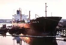 The Julie N. is a Liberian tanker that was involved in an oil spill occurring on the Fore River on 27 September 1996 in Portland, Maine. The 560 foot (170 m) ship was carrying over 200,000 barrels (32,000 m3) of heating oil and was headed towards a docking station in South Portland to unload its contents.[1]