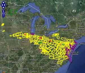 | Areas affected | United States Midwest, United States Mid-Atlantic |