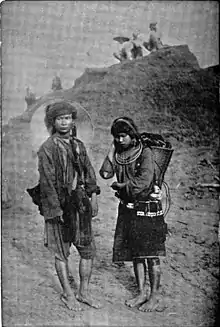 There are many theories of how Kachin people got their name. One of them comes from American baptist missionary Dr. Eugenio Kincaid. When he arrived to the northern part of Myanmar, he first met with the Gahkyeng people. When he asked them who they were, they replied that they were the villagers from Gahkyeng. Therefore, he wrote "Ga hkyeng" in his notes. European writers called the Kachins "Kakhyens" until 1899. The book "The Great Queen is Coming 1890" described Major Ecy Brong was the first person who started using "Kachin" in Roman script.[5] It is also possible that the name comes from the Harari (Harla) word "qachin", which means thin, lean, slender, or narrow.[6]