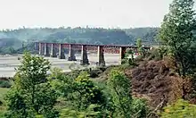 Again in 1973, when the Maharana Pratap Sagar was constructed, a small section of about 25 km (16 mi) on KVR had to be realigned to the reservoir. Hence, the line was dismantled between Jawanwala Shahr and Guler on 11 April 1973 and diverted onto higher grounds along the eastern shore of the new reservoir. The Older section between these two stations, along with Anur and Mangwal stations was abandoned, and the new alignment with several new stations opened three years later on 29 December 1976.[9]