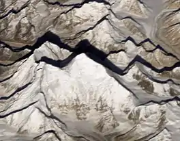 Course of the Kangshung Glacier in the Mount Everest region of Himalayas.