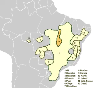 - ↑ Nikulin, Andrey. 2020. Proto-Macro-Jê: um estudo reconstrutivo. Doctoral dissertation, University of Brasília.