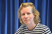 Katharina Grosse (born 2 October 1961) is a German visual artist. She is known for her large-scale, site-related installations to create immersive visual experiences.[1] Grosse's work employs a use of architecture, sculpture and painting. She has been using an industrial paint-sprayer to apply prismatic swaths of color to a variety of surfaces since the late 1990s, and often uses bright, unmixed sprayed-on acrylic paints to create both large-scale sculptural elements and smaller wall works.