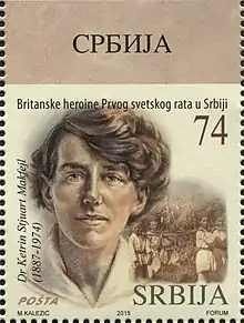 Katherine Stewart MacPhail OBE (30 October 1887 - 11 September 1974) was a Scottish surgeon. During World War I, she served as Chief Medical Officer of two units of the Scottish Women's Hospitals for Foreign Service. She cared for the wounded in Serbia, France, and the Thessaloniki Front. In 1921, during her stay in Serbia, she founded the country's first children's hospital.[1] While she is remembered as a national hero in Serbia,[2] she was criticised by some for providing her expertise in Serbia rather than in her own country.[3] Her honours include several medals, plaques, and a postage stamp.