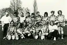 ![]() Katrin Prühs (front row, second from right, kneeling) with the Polizei SV Rostock women's team in 1995 | |||