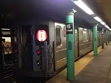 A train of Kawasaki R62 subway cars on the New York City Subway "3" train line