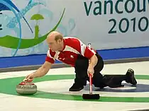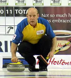 Kevin Martin (born July 31, 1966), nicknamed "The Old Bear" and "K-Mart",[1] is a Canadian retired curler from Edmonton, Alberta, an Olympic, World and four-time Canadian champion and a member of the World Curling Hall of Fame.[2] He is considered by many commentators and former and current curlers to be the greatest curler of all time.[3][4][5][6][7] He is also known for his rivalries with Randy Ferbey/David Nedohin, the best Alberta provincial rivalry ever as the two teams were generally regarded the best in the world from 2002 to 2006; his rivalry with Jeff Stoughton, perhaps the most famous all prairies rivalry ever which spanned over 2 decades from 1991 to 2014; with Glenn Howard from 2007 to 2014, perhaps the best two team rivalry in Canadian curling history, and his rivalry with Sweden's Peja Lindholm from 1997 to 2006, perhaps the best ever men's Canada-Europe rivalry.
