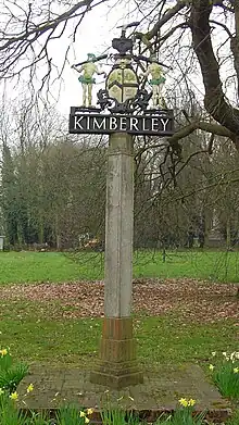 Kimberley is a village and civil parish in the South Norfolk district, in the county of Norfolk, England, situated about 3 miles (4.8 km) north-west of Wymondham, around the crossroads of the B1108 and B1135. The parish has an area of 9.33 km2 (3.60 sq mi) and had a total population of 121 in 52 households as of the 2001 census.[2] The parish absorbed the parish of Carleton Forehoe on the 1 April 1935.[3]