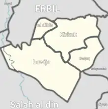 Kirkuk District (Arabic: قضاء كركوك, Turkish: Kerkük ilçesi)[1] is a district in Kirkuk Governorate, Iraq. Its administrative center is the city of Kirkuk. It contains many of the Governorates attractions such as dibis forest altin kupri laylan And of course, the largest city in the district kirkuk
