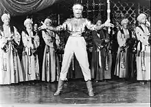 The musical was commissioned by Edwin Lester, founder and director of the Los Angeles Civic Light Opera, who conceived of a musical based on the 1911 play Kismet by Edward Knoblock.[1][2] Lester had previously produced Song of Norway, with the same composing team, adapting the melodies of Edvard Grieg. For Kismet, the writers seized upon the music of Alexander Borodin, which they felt had a suitable exotic flavor and lush melodies.[3]