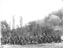 On this same day, 7 August, Dovezenski had crossed the border.[10] Dovezenski, who had been to church school in Belgrade, and had been a teacher in his village, had in a period of 7 years lost friends due to their Serb identity.[10] When in March 1904, Bulgarians killed his godfather Atanas Stojiljković in his birthvillage of Dovezance, Dovezenski closed his school and went to Vranje, where he demanded a permit to form a Chetnik band.[10] Servant Miladinović found the band of Jovan Pešić-Strelac, which was composed of Chetniks from Toplica, Vranje frontier soldiers, and people from Old Serbia.[10] While descending the Pčinja, they learnt of the Kokošinje massacre, which the whole Kratovo and Kumanovo regions uttered Babata's name, but also heard the name of Jordan Spasev, a Bulgarian reserve soldier.[10]