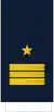 The rank insignia consisted of shoulder strap and sleeve stripes. Shoulder straps had to be worn on uniform jackets and consisted of twisted silver-braids with one gold pip (star) on padding in navy blue weapon color.