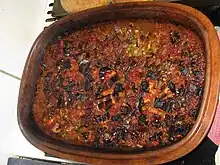 Tavë Prizreni is a traditional regional casserole from the southern city of Prizren. It is made with lamb, eggplants, green peppers, onions, tomatoes and is served hot. Sarma is also another popular lunch dish which (although not limited to) consists of minced meat wrapped with cabbage or vine leaves.[11]
