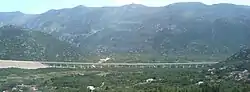 The Kotezi Viaduct is a reinforced concrete viaduct carrying the A1 motorway in Croatia between Ravča and Vrgorac, across the Bunina Polje. It is 1,227 metres (4,026 ft) long and 28 metres (92 ft) wide, built as a dual structure, each part carrying two traffic lanes and an emergency lane.[1] The Kotezi Viaduct is the second-longest viaduct along the A1 motorway route, surpassed only by the Drežnik Viaduct.[2] The viaduct was built by a joint venture of DYWIDAG and Strabag and it represents the most complex structure along the Ravča–Vrgorac section of the A1 motorway.[3]