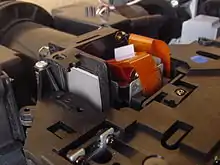 Early experiments with liquid crystals to generate a video image were done by John A. van Raalte at the RCA-Laboratories in 1968.[2] His concept was based on e-beam-addressing to generate an electronic charge pattern corresponding to a video image, which in turn controlled the LC layer of a reflective LC cell. E-beam-addressing requires a CRT with a modified faceplate to generate a charge pattern on its surface. No practical application of this concept for projection purposes is known. However, a similar concept was used for print heads without an LCD.