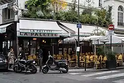 The café was originally and still is a gathering place for students of the nearby Fine Arts National Higher School.[3] Paul Cézanne, Pablo Picasso and Georges Braque were among the regular patrons.[4] More recently, La Palette became a trendy place and attracted Parisian youth as well as tourists. Former French President Jacques Chirac was a regular patron of La Palette.[5]