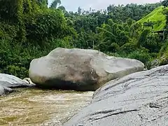 La Piedra Escrita (Spanish for 'the written stone') is a rock art site consisting of a large granite boulder containing pictographs located in the Saliente River[1] in Coabey, Jayuya in central Puerto Rico. The petroglyphs have become popularly associated with the Taino people and have been widely reproduced in popular art,[2] and the site has become a popular tourist attraction. The site was added to the United States National Register of Historic Places in 2003 due to its importance as a prime example of prehistoric rock art in Puerto Rico.[3]