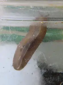This slug has a unique, very narrow foot; juvenile specimens have a foot 1 mm (0.039 in) wide and adult specimens have a foot that is only 4 or 5 mm (0.16 or 0.20 in) wide.