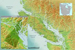 Laich-kwil-tach (also spelled Ligwilda'xw), is the Anglicization of the Kwak'wala autonomy by the "Southern Kwakiutl" people of Quadra Island and Campbell River in British Columbia, Canada. There are today two main groups (of perhaps five original separate groups): the Wei Wai Kai (Cape Mudge Band) and Wei Wai Kum just across on the Vancouver Island "mainland" in the town of Campbell River. In addition to these two main groups there are the Kwiakah (Kwiakah Band / Kwiakah First Nation) originally from Phillips Arm and Frederick Arm and the Discovery Islands, the Tlaaluis (Laa'luls) between Bute and Loughborough Inlets—after a great war between the Kwakiutl and the Salish peoples they were so reduced in numbers that they joined the Kwiakah—and the Walitsima / Walitsum Band of Salmon River (also called Hahamatses or Salmon River Band).