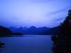 Lake Wolfgang[1][2][3] (German: Wolfgangsee) is a lake in Austria that lies mostly within the state of Salzburg and is one of the best known lakes in the Salzkammergut resort region. The municipalities on its shore are Strobl, St. Gilgen with the villages of Abersee and Ried as well as the market town of St. Wolfgang in the state of Upper Austria. The town and the lake are named after Saint Wolfgang of Regensburg, who, according to legend, built the first church here in the late 10th century.