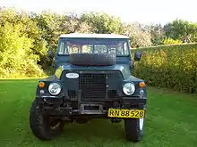 The smallest Land Rover available at the time was a Series IIA 88 inch (2235 mm) wheelbase, which was too heavy. Land Rover began work on a lightweight version to fit the specifications in 1965.[1] A new modification to the basic Series IIA was devised by making many body components easily detachable and removing many non-essential items. The result was the Land Rover Half-Ton, known widely as the Lightweight or Airportable. In practice, to reduce weight sufficiently for the helicopters of the day to lift them in combat conditions, the tilt (roof) and sticks, the upper parts of the body, the doors and windscreen were removed, to be refitted later. The most significant change, however, was a reduction in width by 4 inch (100 mm), by redesigning the standard Series IIA axles and fitting shorter half-shafts, which meant it would fit on a standard pallet.