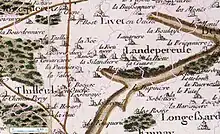The location was shown on the Cassini map of France in the 18th century. The map also shows that some of the hamlets currently nearby already existed: Le Breuil, La Silandière, La Hiette, La Chaise, Le Hamel, and La Pannière. The Cassini map also provides information on the importance of the village of Landepereuse. No primary road seems to cross the village of the time. Two important roads on the map pass nearby, close to Tilleul-en-Ouche. The first runs from Les Jonquerets to Chambord. Today it has become a very minor local road. The other, from Broglie to La Barre-en-Ouche is still important today. The road from Bernay/La Barre-en-Ouche, relatively high-traffic today, if it existed at the time, was not large enough to note.