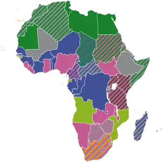 Map showing the traditional language families represented in Africa: