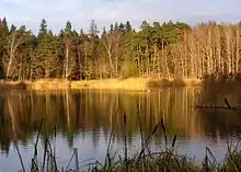 The only fish in the lake is crucian carp, probably introduced in the early 1980s. Attempts have been made to reduce the population with various results. In the mid-1970 a colony of black-headed gulls together with Slavonian grebe, mallard, little grebe, and gadwall. The black-headed gull is a key species, offering protection to other species, and has now abandoned the lake which is, however, still considered as of great importance to bird life with several species still breeding there. Several protected species of amphibians can be seen by the lake, including common frog, common toad, moor frog, and smooth newt.[3]