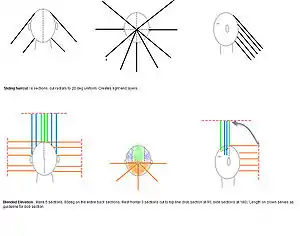 Blended Elevation: The top section (bob section) is cut at 90 degrees while the side sections are cut 180 deg to the length of the top section. The occipital and nape sections are cut at 90 deg. In this form of layering there is an "elevated" group of layers formed due to shorter top section and then it blends with the softer side and back layers. It is not considered suitable for wavy or curly hair, but for straight or slightly wavy hair.