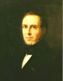 Count Gérard Le Grelle, the son of Joseph J. Le Grelle, was a banker and set up the insurance companies Securitas (1819) and L'Escaut (1821). His situation was hardly comfortable, as the business world was increasingly supporting the Orangism (Dutch Republic) for fear of seeing the Scheldt blocked again by The Netherlands. A supporter of Belgium since his schooling in Brussels with Professor Jean-Baptiste Lesbroussart, Gérard asserted himself, between 1815 and 1830, by categorically refusing any administrative or political office under the Dutch regime and even turning down a proposal to be appointed town councilor.[21] He preferred instead to concentrate his energy on the city of Antwerp and his bank. Together with his brothers Henri (1798-1872)[22] and Edmond (1805-1876),[23] he was a driving force behind the bank,[24] which played an important role in financing the city of Antwerp after the independence of Belgium in 1830. Together with the Rothschild Bank, the Le Grelle Bank was also among the major financiers of the Papal States (which at the time represented a quarter of Italy, from the south of Rome to Bologna) prior to the unification of Italy through the Peter's Pence in 1854 and 1864. Count Gérard Le Grelle's name remains attached to a famous petition for religious freedom in 1825, which earned him Rome's support in 1852.