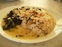 When dining as a family, the mezze typically consists of three or four dishes, but when served in the restaurant, the mezze can range from 20 to 60 dishes, as the variant combinations and dishes involved are plenty.[29] Family cuisine also offers a range of dishes, such as stews (yakhneh) which can be cooked in many forms depending on the ingredients used and are usually served with meat and rice.[30][31]
