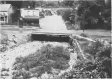 In 1975, a 48.9-foot-long concrete tee beam bridge was built; this bridge carries Hollow Ave over Leggetts Creek. In 1979, a 37.1-foot-long prestressed box beam or girders bridge was built; it carries Mary Street across the creek. A 44.9-foot-long bridge of the same type was built in the same year and carries Wells Street over the creek. A 43.0-foot-long bridge of a similar type was built in 2009 and carries T-422/Burcher Ave over the creek. A 43.0-foot-long steel stringer/multi-beam or girder bridge was built in 2010 and carries State Route 1027/Layton Road over the creek.[23]
