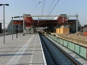 Lelystad Centrum is a railway station in the town of Lelystad, Netherlands. The station is on the Flevolijn and Hanzelijn and the train services are operated by Nederlandse Spoorwegen. The station was opened on 28 May 1988 after the extension from Almere Buiten was completed. The station was doubled in size to 4 platforms to accommodate the increase in trains following the opening of the Hanzelijn on 9 December 2012.