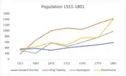 In 1551, the last major outbreak of the disease known as the Sweating Sickness struck England resulting in an estimated 15% reduction in the population. The Cotswolds was badly affected, and Leonard Stanley experienced a loss of 36.5%.[28] Following this epidemic there was a slight recovery in numbers, but by 1676 there had been an overall decline of -8.9% to 319 villagers. By 1710, the Leonard Stanley had 90 houses and 400 inhabitants. The parish records, and census information provide a much more accurate picture from 1801 onwards.