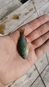 - ↑ Lyons, John. "Wisconsin Department of Natural Resources." Longear Sunfish (Lepomis Megalotis). DNR of Wisconsin, 07 Oct. 2014. Web. 04 Jan. 2015. Wisconsin DNR - Longear Sunfish.