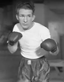 Lew Jenkins (December 4, 1916 – October 30, 1981) was an American boxer and NYSAC and The Ring lightweight champion from 1940 to 1941. He was born in Milburn, Texas and was raised during the Great Depression. He began fighting in carnivals and later continued his boxing in the US Coast Guard. He was an exceptionally powerful puncher and 51 of his 73 wins were by knockout. His managers included Benny Woodhall, Frank Bachman, Hymie Kaplan, and Willie Ketchum and his trainer was Charley Rose.[1]