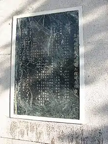 A stone plaque dating from 1975 that commemorates the completion of the village's residential buildings.