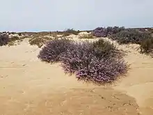 In Egypt, it is found in salt marshes,[24][29] coastal sand dunes and rocky ridges habitats.[6][26] It is also found in the dunes of the salt marsh around Lake Manzala and Lake Mariut, on the west Mediterranean coast and also the salt marshes near Sallum.[29] In Portugal, it is found in salt marshes with Atriplex portulacoides.[24]
