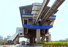 The Chembur monorail station is connected with a skywalk to the Chembur railway station.[58][59] However, the Wadala Depot station is at least 2 km away from the Wadala Road railway station.[5] Skywalks have also been constructed at Bhakti Park and Wadala, and will be constructed at Ambedkar Nagar, Lower Parel and Jacob Circle.[60]