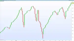 A line break chart, sometimes known as a three-line break chart, is a Japanese trading indicator and financial chart used to analyse the financial markets.[1] Invented in Japan these charts had been used for over 150 years by traders in Japan before being popularised by Steve Nison in the book “Beyond Candlesticks.”[1] [2] The chart is made up of vertical blocks or bars called "lines", which indicate the direction of the market.[3]