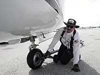 A line technician (commonly known as a line tech, line guy, gas jockey or ramp rat) is someone who works on an airport ramp at a fixed-base operator (FBO), a business that typically handles general aviation aircraft as opposed to commercial traffic. Their technical responsibilities include coordinating ramp operations and aircraft movement via radio, marshalling, fueling, towing aircraft, operating ground support equipment, servicing aircraft, potable water and lavatory systems, checking and maintaining proper aircraft engine oil and tire pressure levels, sampling aviation fuel for quality control, conducting deicing operations, and performing runway inspections.[1] Customer service-related responsibilities include greeting and assisting passengers, loading baggage, providing coffee, ice, newspapers, and catering to the aircraft, driving rental cars to and from the aircraft, and providing ground transportation around the airfield. The most notable corporation that handles these services is Swissport and the runner-up is Service Air.