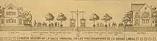 The linear city is an urban plan for an elongated urban formation that was proposed by Arturo Soria y Mata in 1882.[1] The city would consist of a series of functionally specialized parallel sectors. Generally, the city would run parallel to a river and be built so that the dominant wind would blow from the residential areas to the industrial strip. The sectors of a linear city would be: