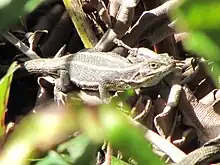 Liolaemus cyanogaster (cyan tree iguana ) is a species of lizard in the family Liolaemidae. It is endemic to Chile, being abundant between Concepción and Puerto Montt.