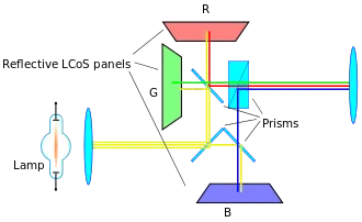 LCoS is distinct from other LCD projector technologies which use transmissive LCD, allowing light to pass through the liquid crystal, and is more similar to DLP micro-mirror displays.