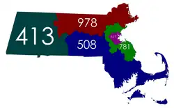 - 1 2 Staff writer (2022). "Massachusetts Area Code Information". areacodehelp.com. Retrieved January 12, 2023.