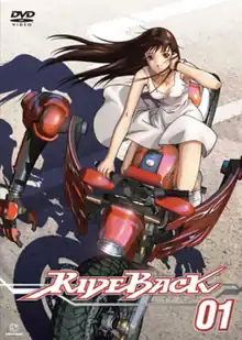 Rideback is a Japanese anime television series based on Tetsurō Kasahara's manga series of the same name. The anime was announced in April 2007.[1] The twelve-episode series was animated by Madhouse and directed by Atsushi Takahashi.[2][3] It was broadcast on Chiba TV, TV Saitama, tvk, KBS Kyoto, Sun TV, Tokyo MX and AT-X from January 12 to March 30, 2009.[4][5][lower-alpha 1] The opening theme is "Rideback", performed by Mell, and the ending theme is "Kioku" (記憶, lit. "Memory") by Younha feat. Goku.[3][6]