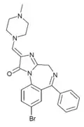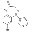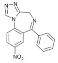 - ↑ Blair T, Webb GA (September 1977). "Electronic factors in the structure-activity relationship of some 1,4-benzodiazepin-2-ones". Journal of Medicinal Chemistry. 20 (9): 1206–1210. doi:10.1021/jm00219a019. PMID 926122.